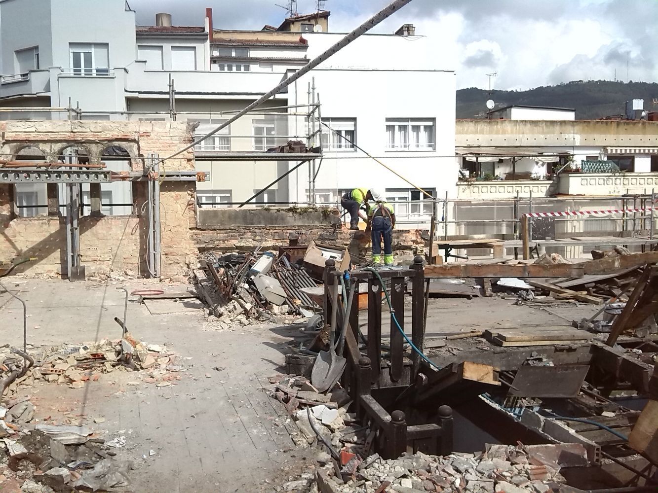 Con la demolición manual se consigue rebajar la altura de la estructura a la cota de alcance de la maquina retroexcavadora, consiguiendo con ello unas demoliciones combinadas.